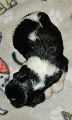Black white parti female AKC Cocker Spaniel at Cocker Pup Kennel- www.cockerpupkennel.com