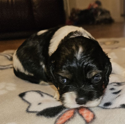Black white Tricolor female AKC Cocker Spaniel at Cocker Pup Kennel- www.cockerpupkennel.com